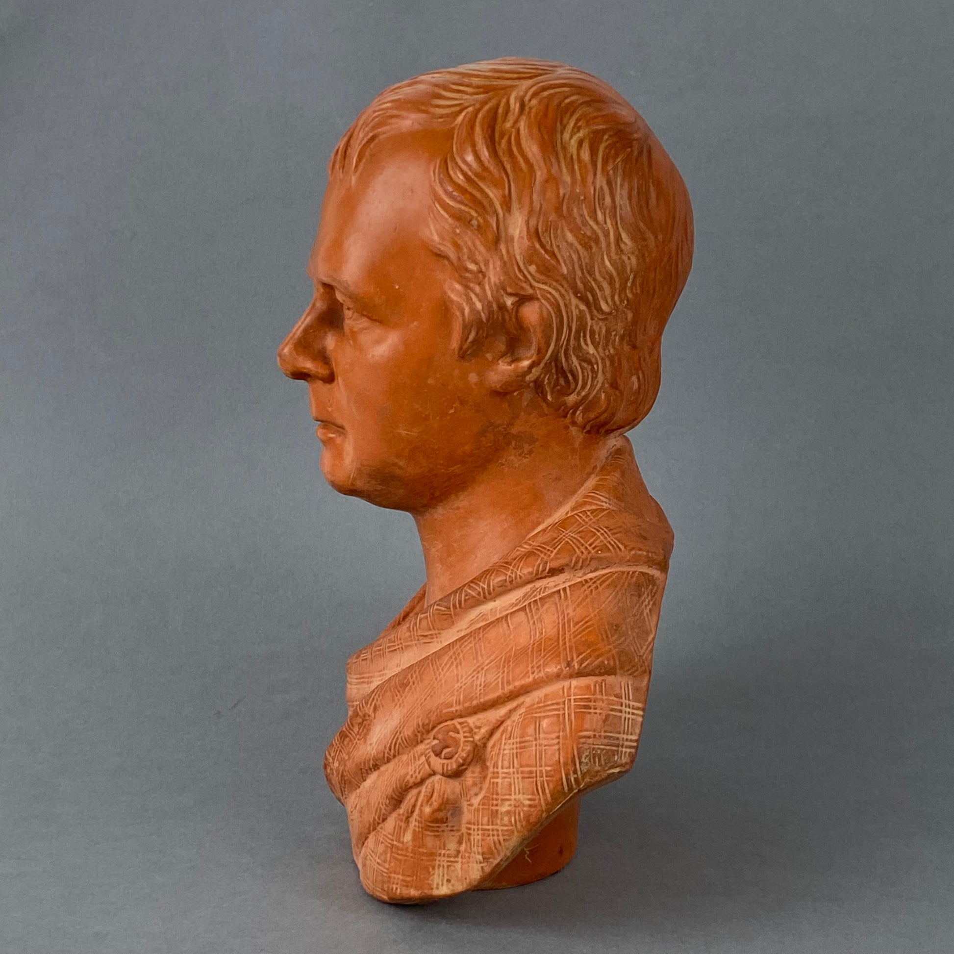19thc Antique Terracotta Figurine Sir Walter Scott Head Bust by Watcombe Torquay