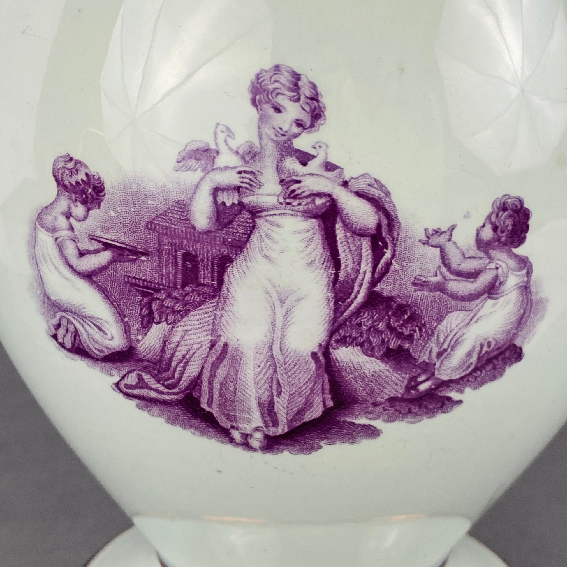 Antique Leeds Pearlware Pink Lustre Coffee Pot with Puce Transfer 18thc English