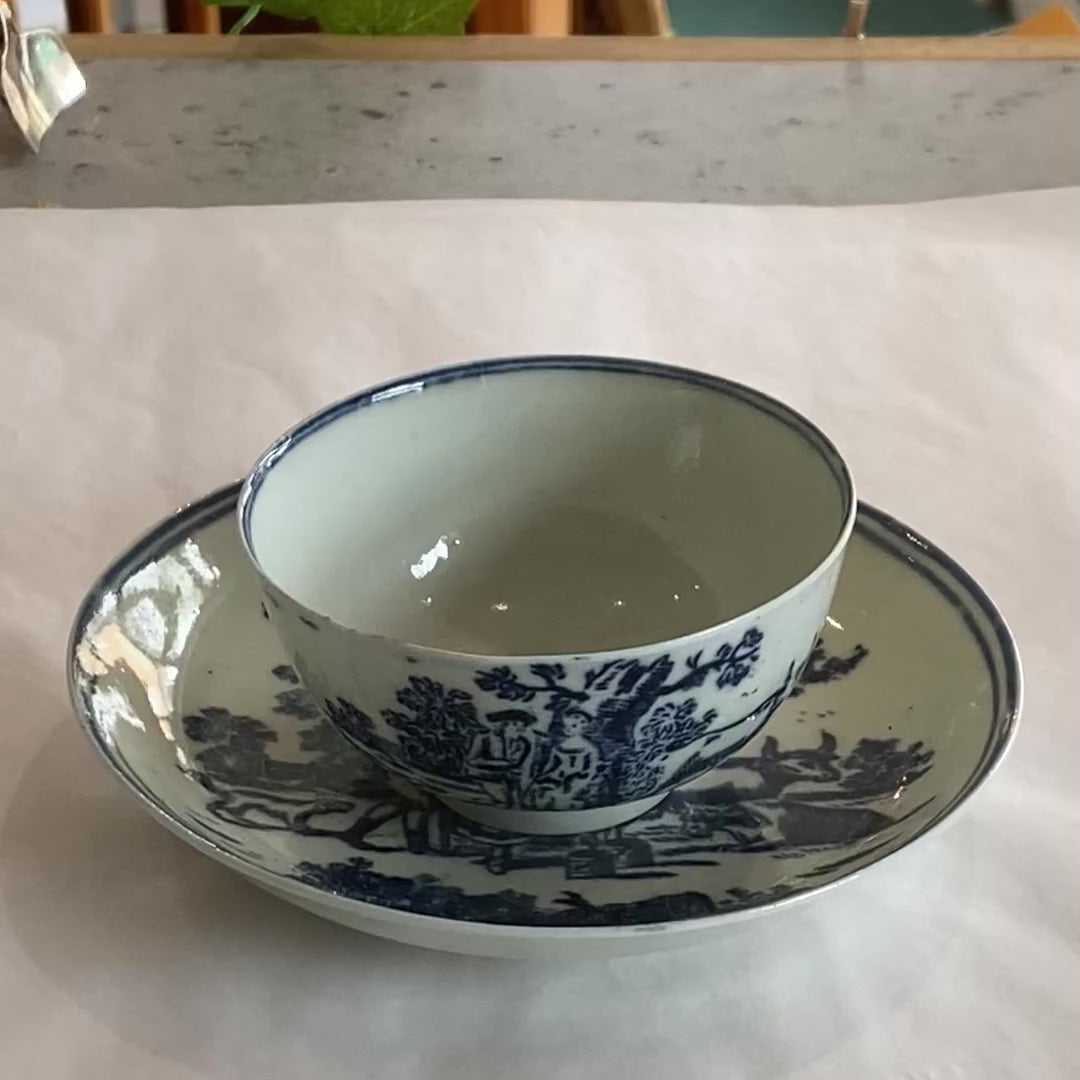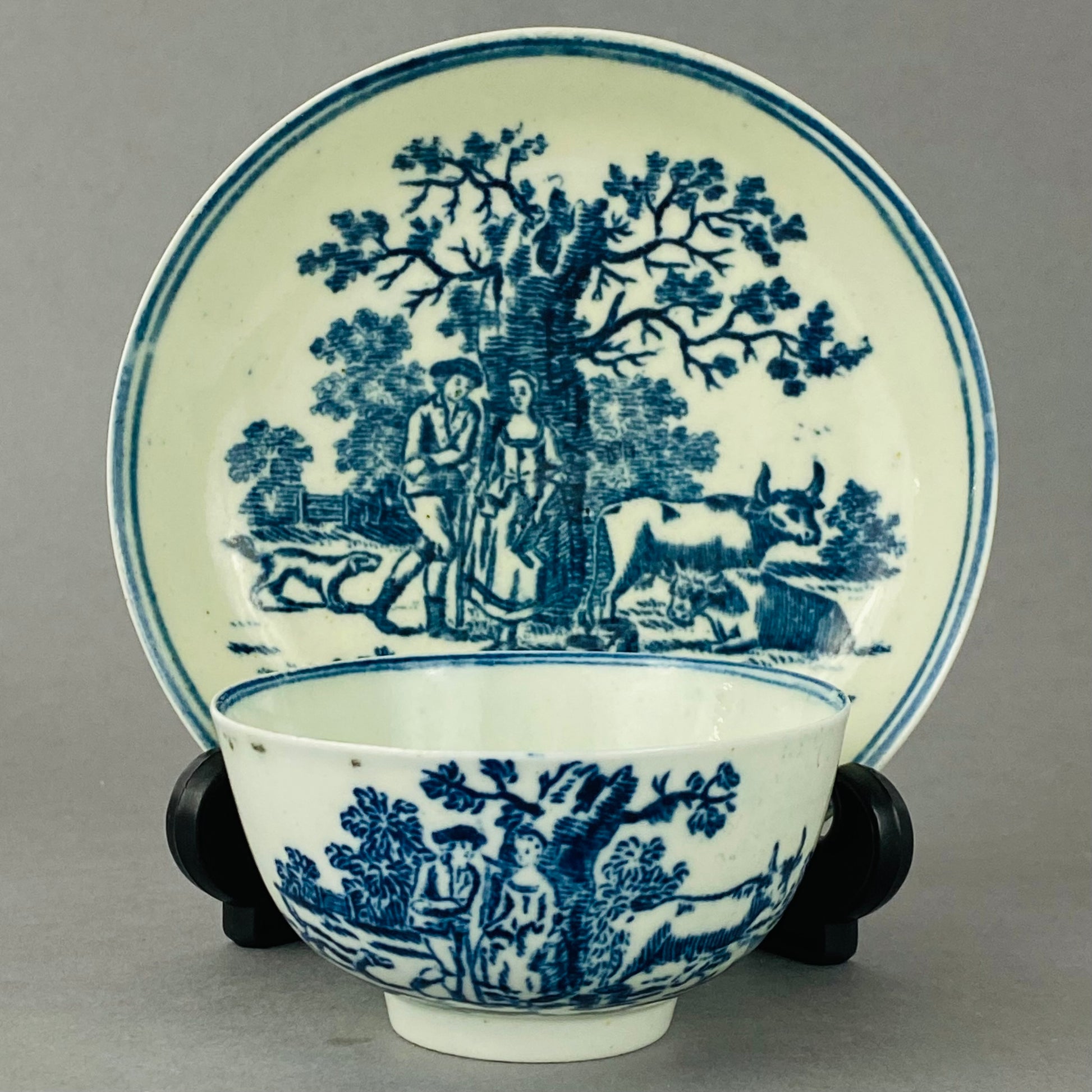 Antique Liverpool Porcelain Tea bowl Cup & Saucer Gainsborough Rural Lovers 18thc