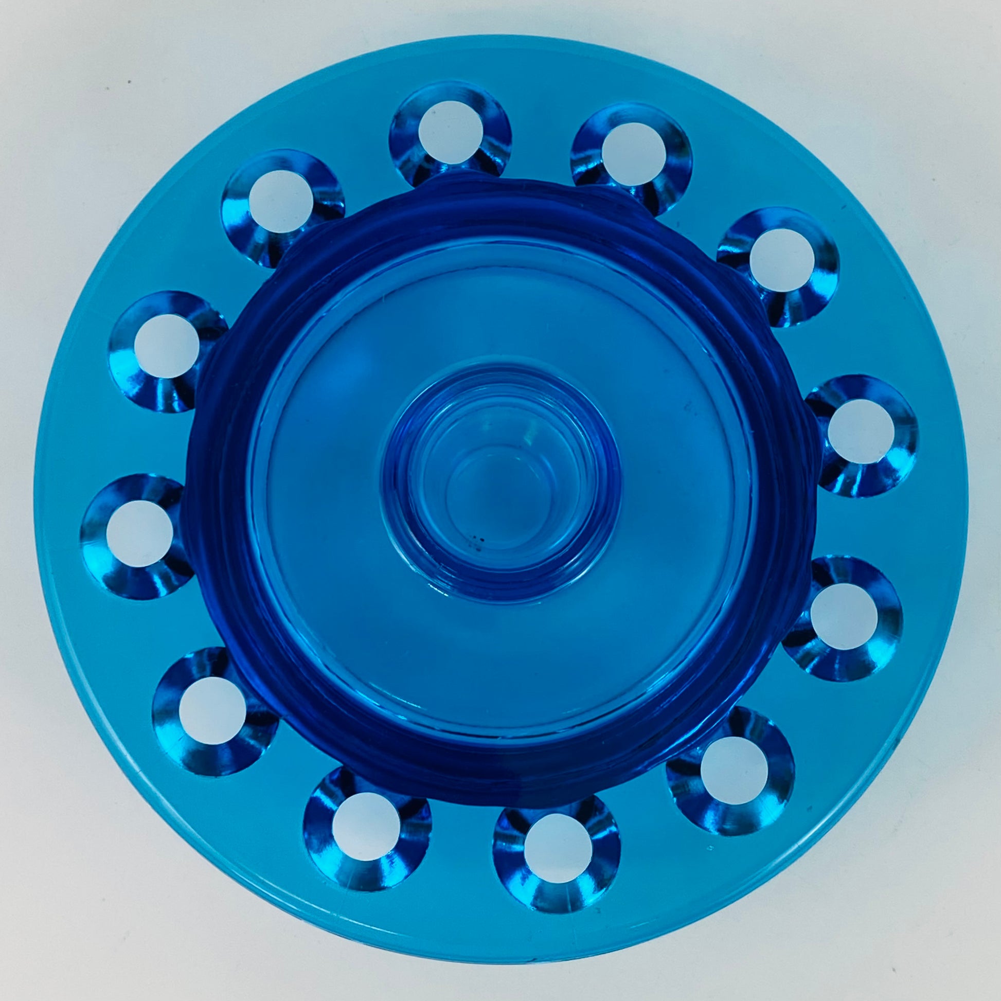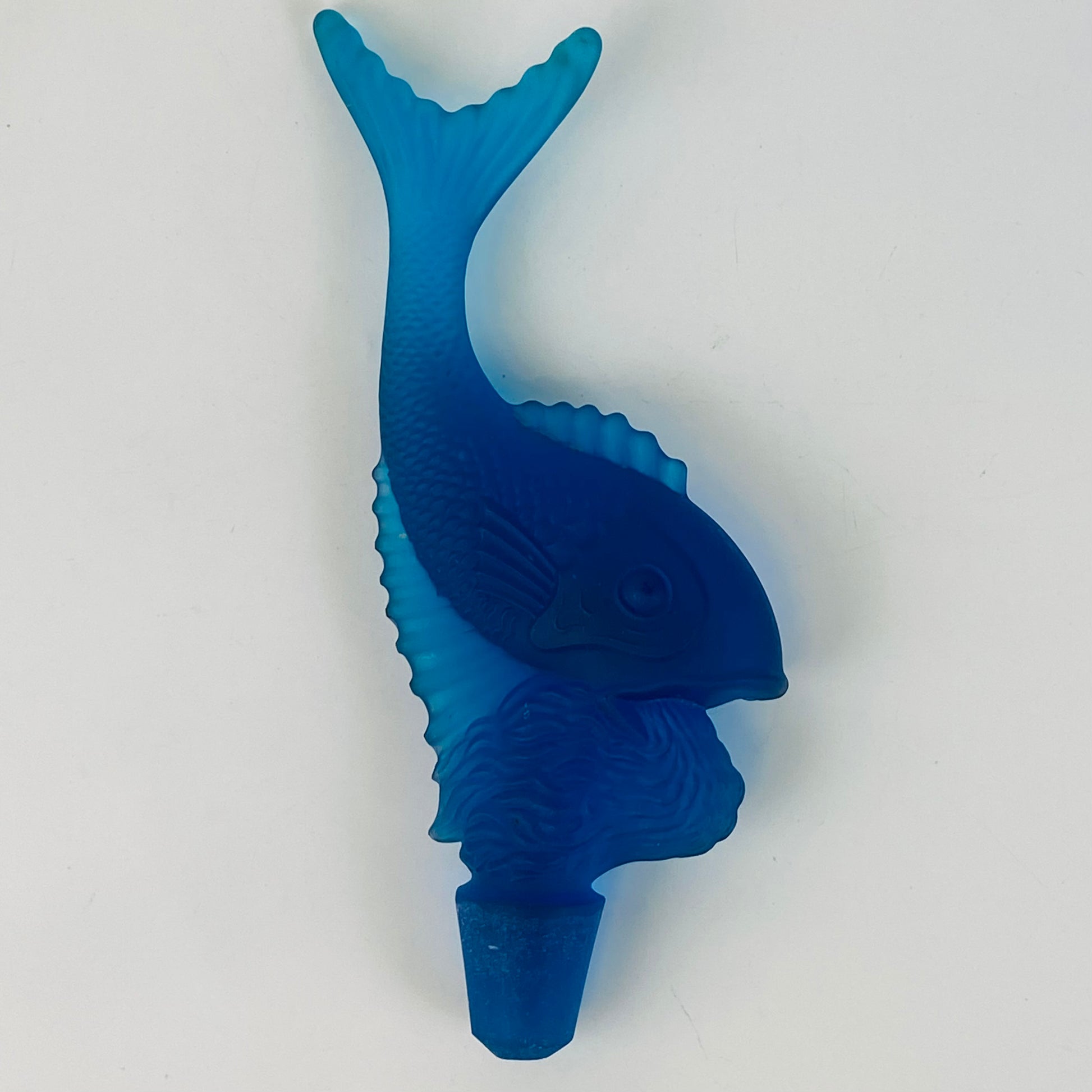 The "blue flying fish" glass centerpiece was created by the Josef Inwald Glassworks, a prominent glassmaking company in what was then Czechoslovakia.