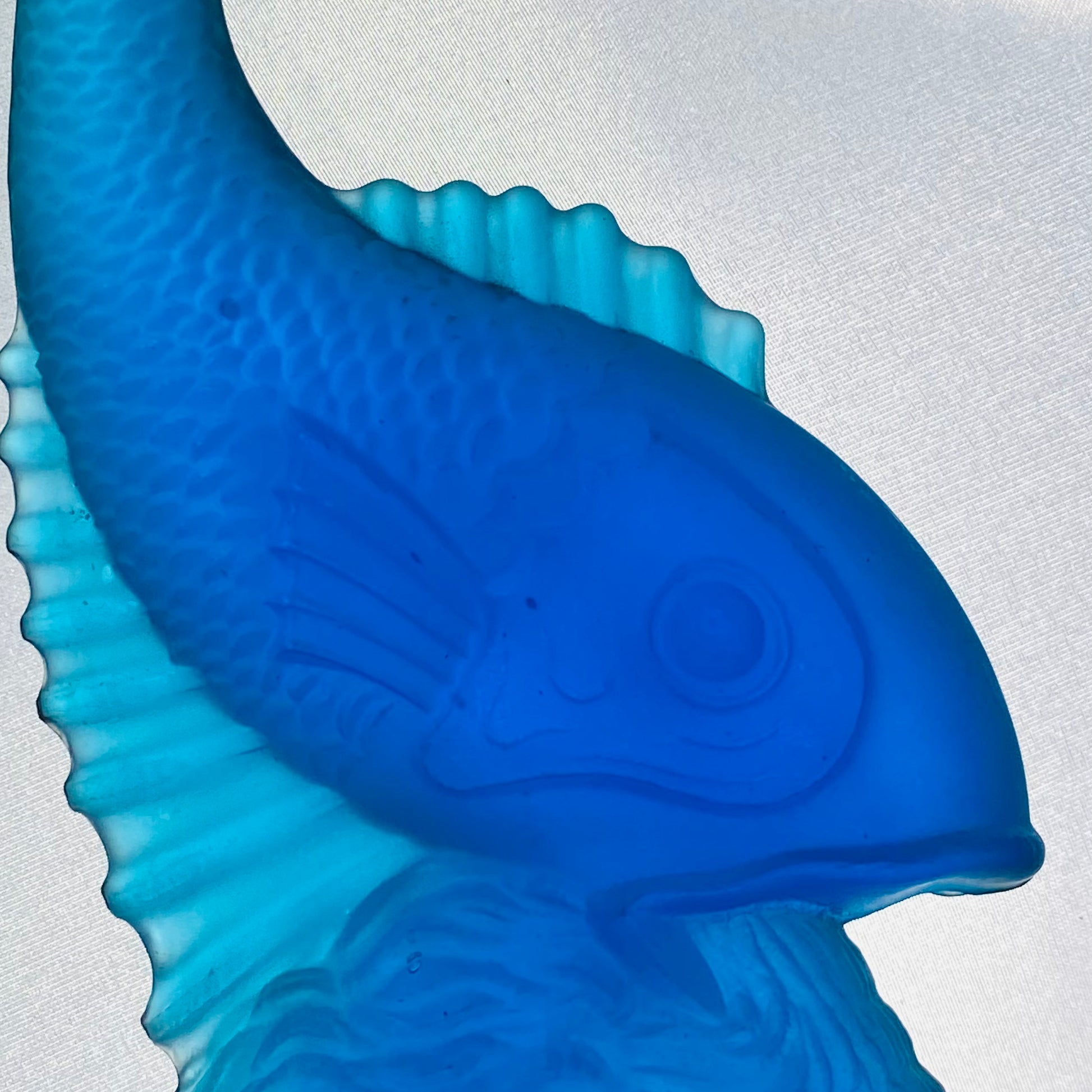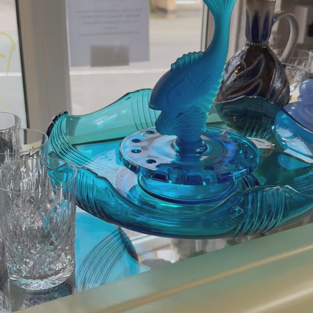 Art Deco Antique Czech Turquoise Glass Fish Flower Bowl Poisson Volant Fish