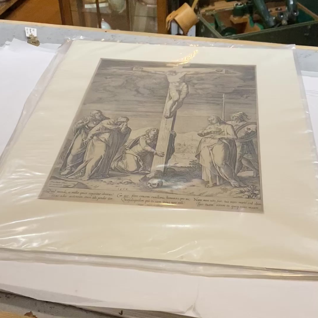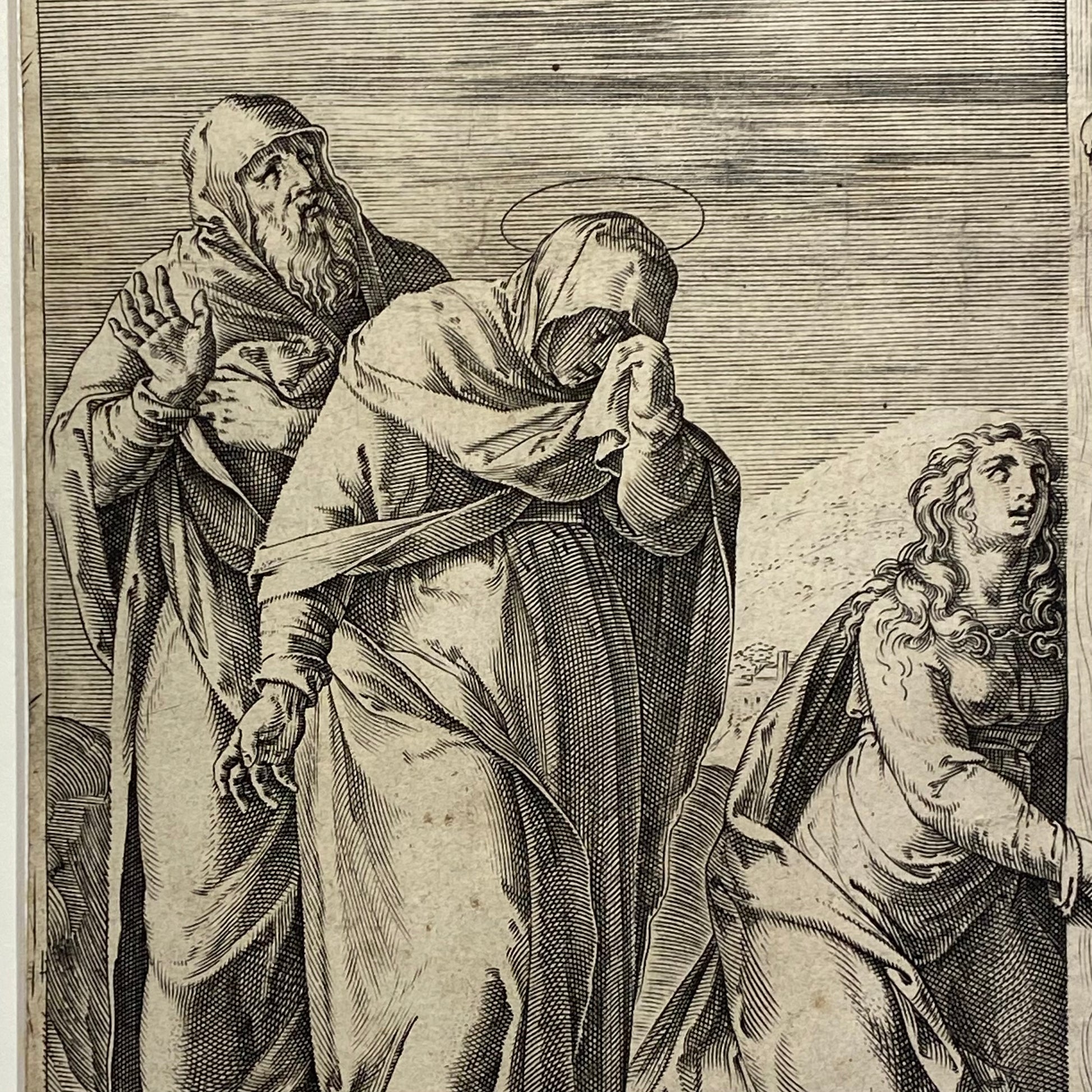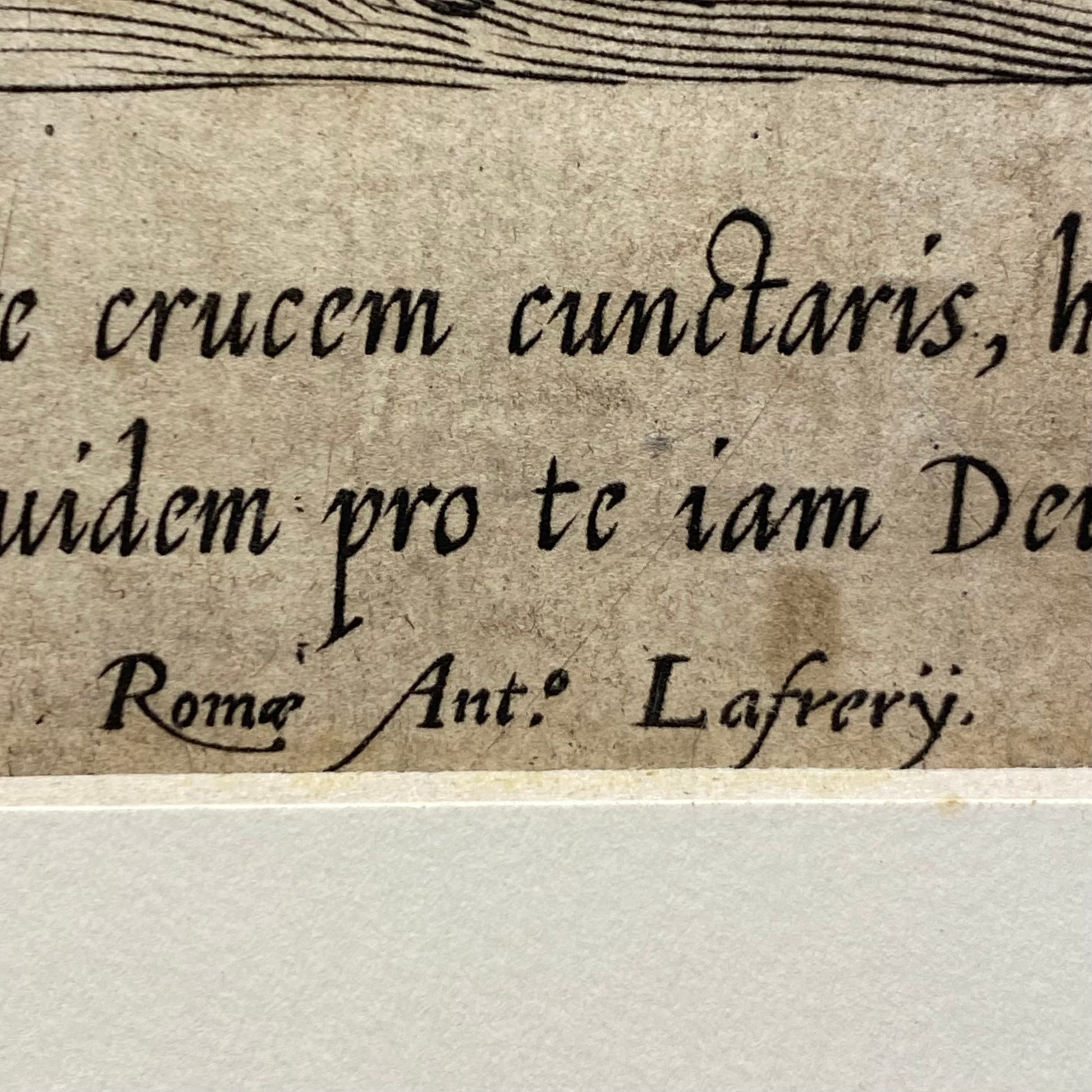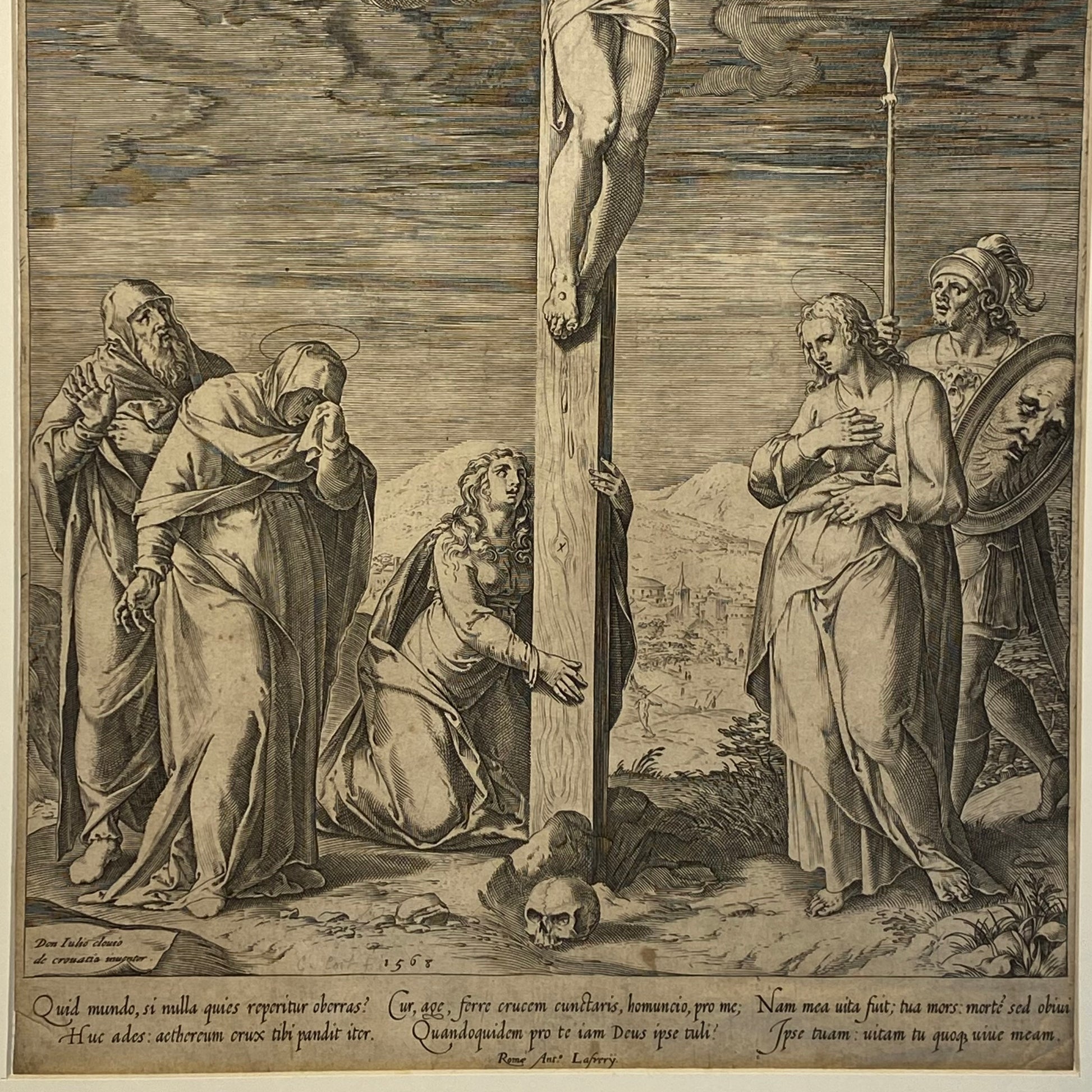 An exceptional 16th-century Renaissance devotional engraving, produced in Rome after a design by Giulio Clovio, engraved by Cornelis Cort, and published by Antonio Lafreri, one of the most important print publishers of the Renaissance period.