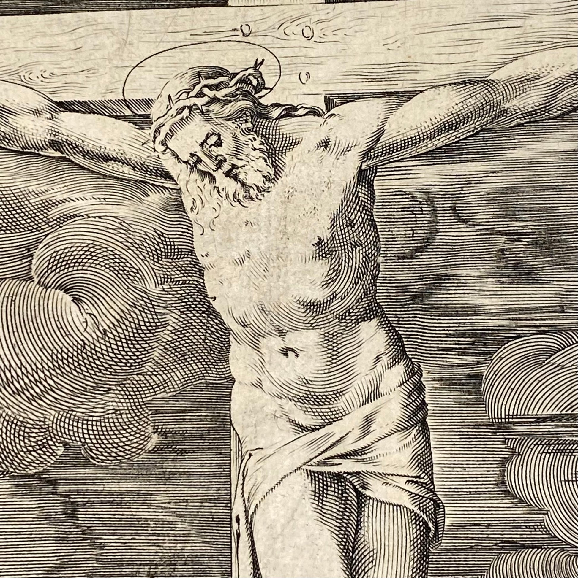 Antique Renaissance Crucifixion Engraving c.1568 by Clovio, Cort, Lafreri Print